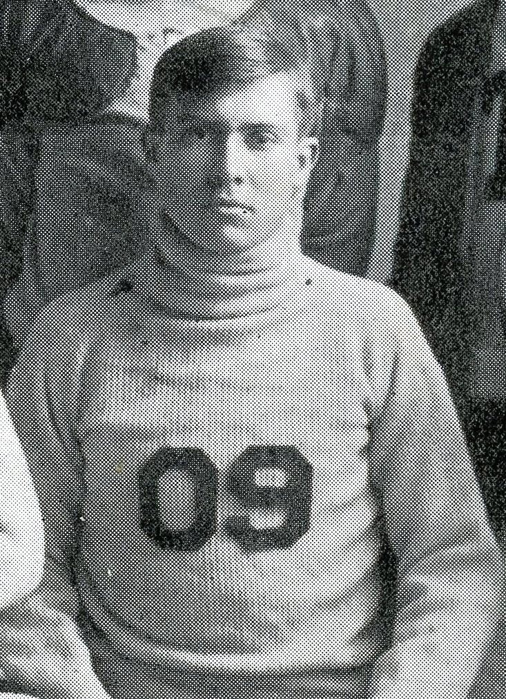 There were a few casualties — nothing serious — but among them was the redoubtable “Mogul” Robinson. (Photo at left.) He was one of the first to try the longer path, flat on his belly on a cracker box, with his feet dragging behind to act as rudders. But as the box gained momentum on the ice, the toes of his shoes were less able to steer or brake. About half way down the hill, Robinson collided with a campus tree. The box tumbled to one side and a stunned Mogul rolled to the other.