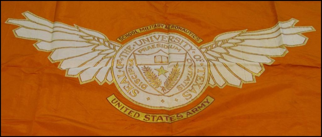 Above: The official flag of UT’s School of Military Aeronautics is still preserved in the University Archives, a part of the Briscoe Center.