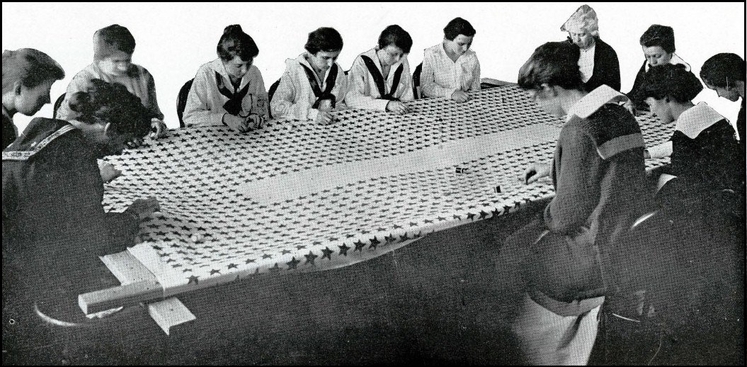 Above: The University ladies Club and the Women’s Council work on the service flag.