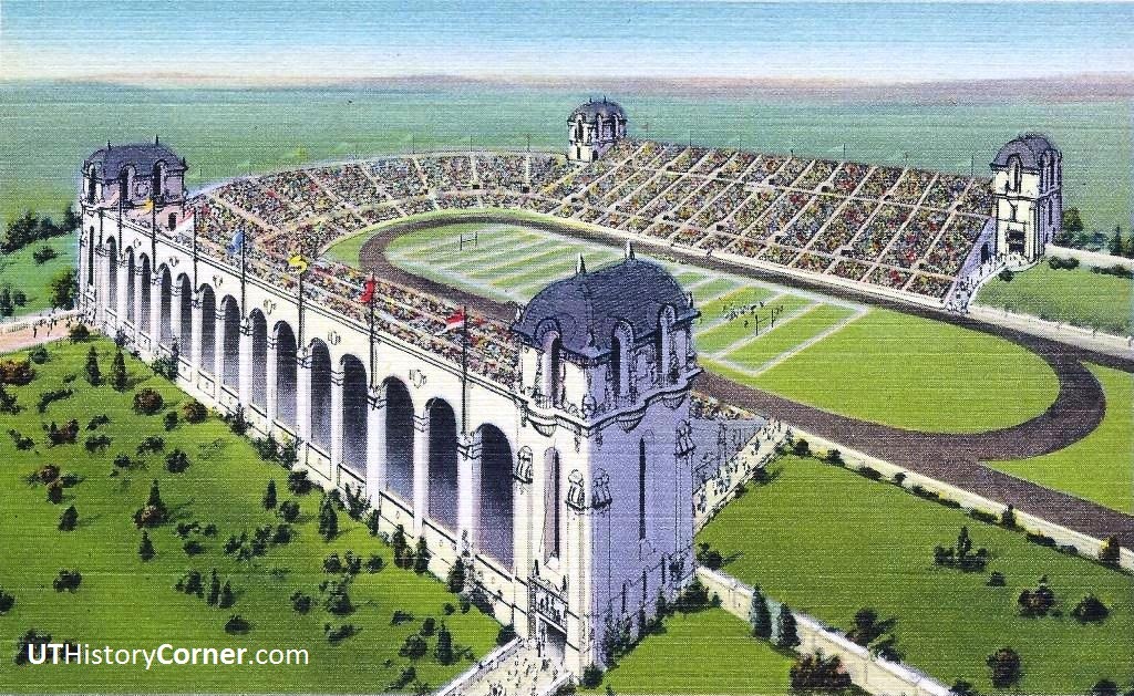 Dallas architect Herbert Greene’s initial design for a new football stadium appeared on postcards across the state and was used to solicit funds for construction. Memorial Stadium was built and dedicated in 1924, though costs never permitted the completion of the ambitious Italianate facade.