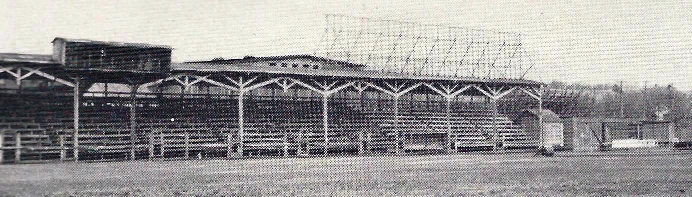 Above: Clark Field, looking toward the covered west stands. A Bartholomew Fair was constructed along the east half of the field.