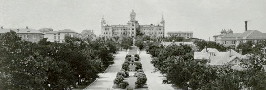 Above: The University campus in 1916. “Old Main” in the center has been replaced by the current Main Building and Tower.