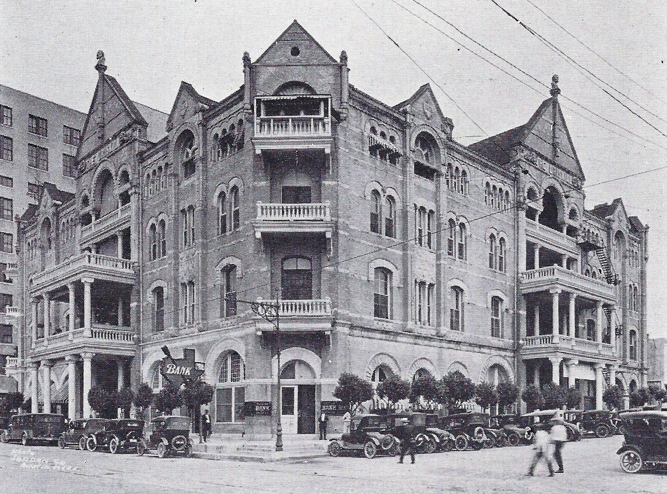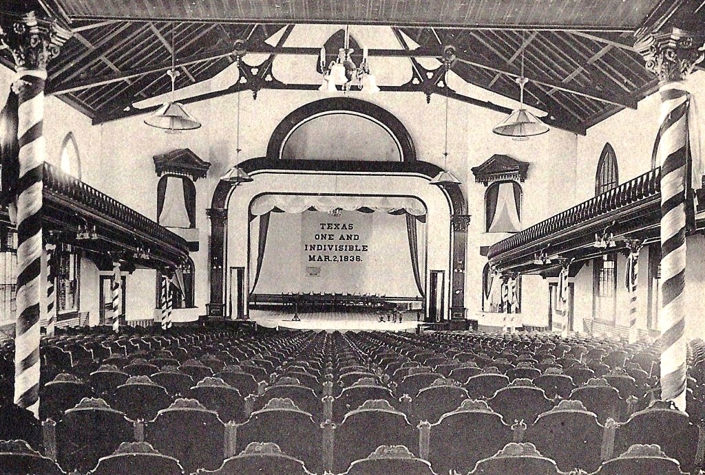 Completed on December 1, 1890, the original hall was a plain, no-frills structure, made from pressed yellow brick and limestone trim. Four stories tall, with simple bay windows and two front doors facing west, it better resembled a pair of low-cost city townhouses adrift on the Texas prairie.