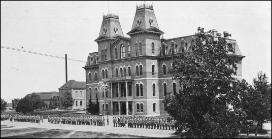 Above: The University’s Old Main, with the newly opened Library on the left.