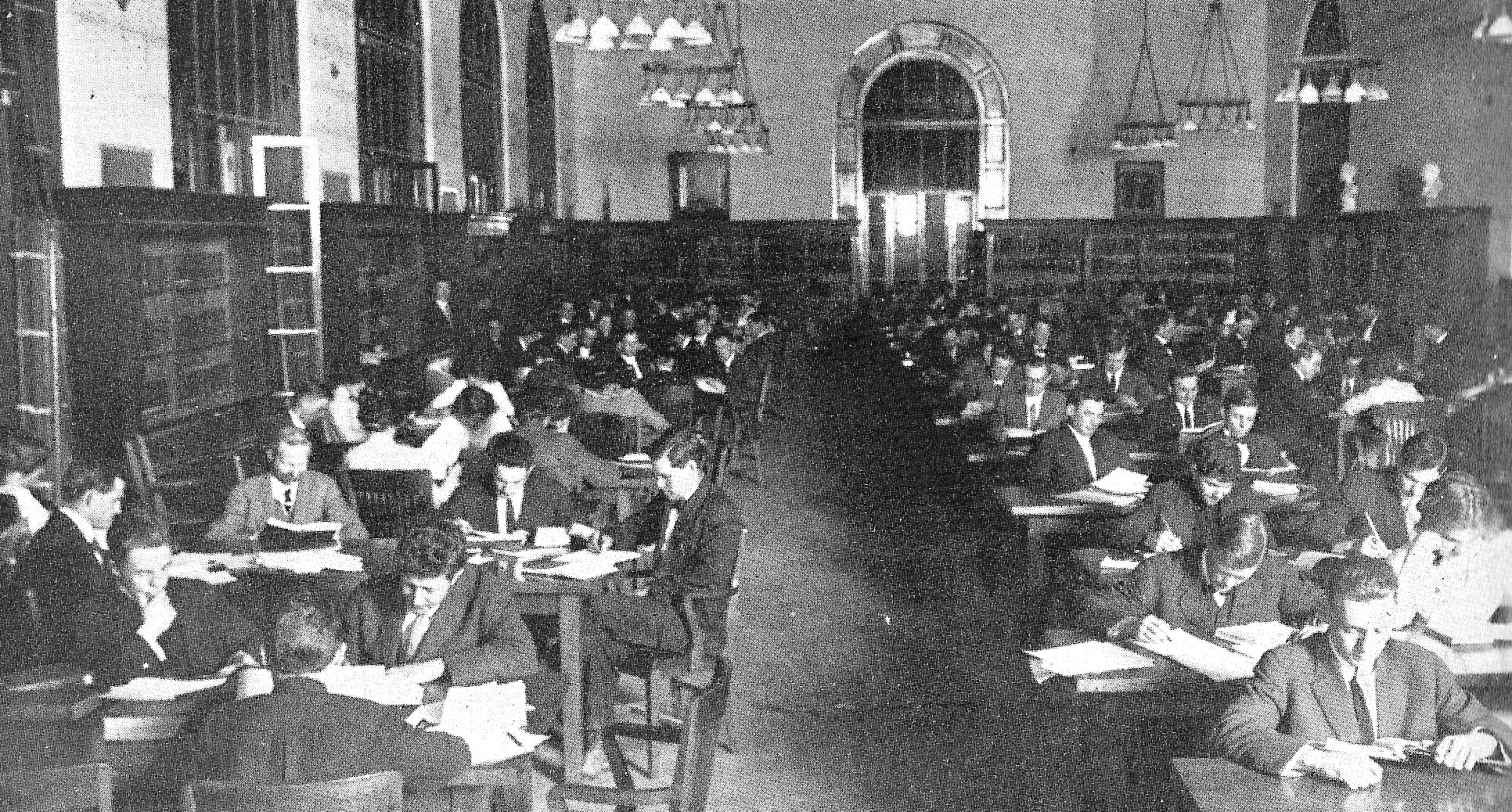 The planetarium was debuted to the University Science Club and faculty on May 3, 1936, before it publicly opened the following month with the campus-wide Texas Centennial Celebration. Three nights each week – on Tuesday, Thursday, and Saturday – two showings were held, at 8 and 9 p.m. “The lecture makes the heavens take on a new and brighter aspect,” reported the Austin Statesman. Much of the presentation was centered on the motions of the planets and comets over the previous century, from 1836, when Texas became an independent nation, to the 1936 centennial year.