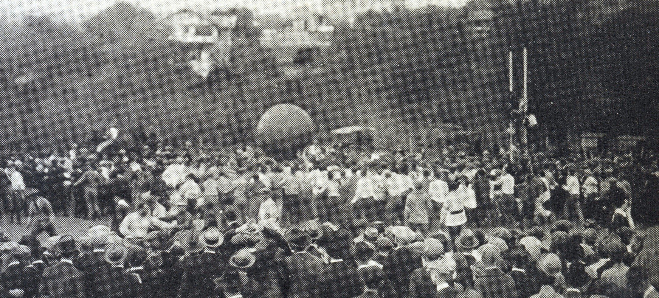 On Thanksgiving Day, thousands of UT fans either drove their Model T’s or boarded trains for College Station. Many wore orange and white armbands that read, “Win or Lose, a Stadium by Thanksgiving, 1924.” Walter Hunnicutt collaborated with Longhorn Band director Burnett Pharr to compose a new song. A friendly spoof on A&M’s “Aggie Taps,” the pair called it “Texas Taps.” The band introduced the tune at the game, and it was an instant favorite. (Today, fans know it as “Texas Fight.” Listen to the earliest recording of the song.) Texas won the day 6-0 over the Aggies, and the fundraising campaign to build a stadium wasn’t far behind.