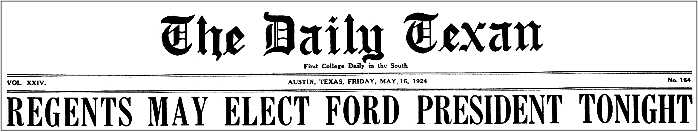 Friday morning, the Texan printed a complete account of the meeting and predicted that Dr. Guy Ford would be UT’s next president. The identity of the reporter was never revealed “for the sake of his university career,” though the Texan added that the regents smoked “bum cigars.”