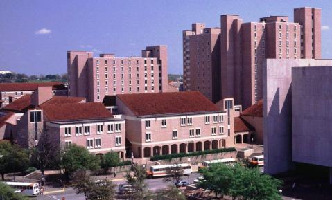 Dormitories were not originally planned for the University. Ashbel Smith, the first chair of the Board of Regents (photo at left), was flatly opposed to them. “It is even worse than a pure waste of money. Nor should there be a college commons where students eat in mess. Experience is decisive on these points.” By experience, Smith knew of the raucous student rebellions that had plagued Harvard and Princeton and left their dorms in shambles, and of a violent incident at the University of Virginia in which a professor was shot and killed. All of these events involved young men housed together on the campus, which left many college authorities hesitant to build dorms. Cornell’s first president, Andrew White, hoped the hometown citizens of Ithaca, New York would provide room and board. White wrote in 1866, “Large bodies of students collected in dormitories often arrive at a degree of turbulence which small parties, gathered in the houses of citizens, seldom if ever reach.” Manasseh Cutler, a Massachusetts botanist who helped to settle Ohio and found Ohio University, was more direct: “Chambers in colleges are too often made the nurseries of every vice and cages of unclean birds.”