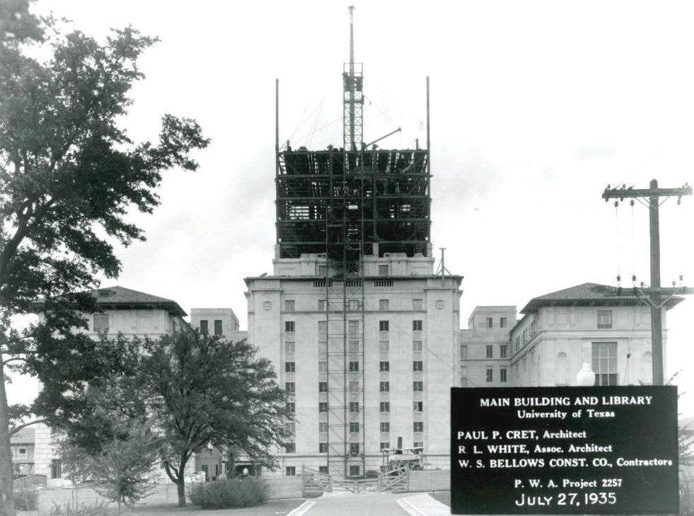 In the mid-1930s, construction of the UT Tower was front page news. The Austin American-Statesman described it as “luxurious and palatial,” while the Texan waxed poetic: “Like the shining spire of some fabled city, the new Library Tower will rise in the air to keep company with the birds and airplanes.” Austin was getting a new tallest building, though not everyone was happy about it.