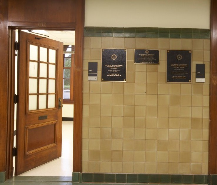 In 1958, as part of UT’s 75th anniversary celebration, Eckhardt oversaw the reconstruction of the Santa Rita oil pump on the south side of campus. Until recently, an audio recording at the pump relayed the story of the oil well and its effect on the University. Eckhardt was the voice of the narration.