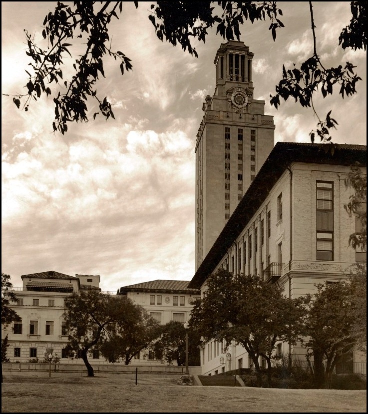 - Sources: William J. Battle Papers, Carl Eckhardt Papers, and the UT President’s Office Papers in the University Archives, preserved at the Dolph Briscoe Center for American History; Robert Leon White Papers in the Alexander Architectural Archives; UT Board of Regents minutes; Architecture of the Night by Dietrich Neuman; various booklets on floodlighting published by General Electric and Westinghouse in the 1920s and ’30s. The Daily Texan and Austin American-Statesman newspapers; Texas Ranger and Alcalde magazines.