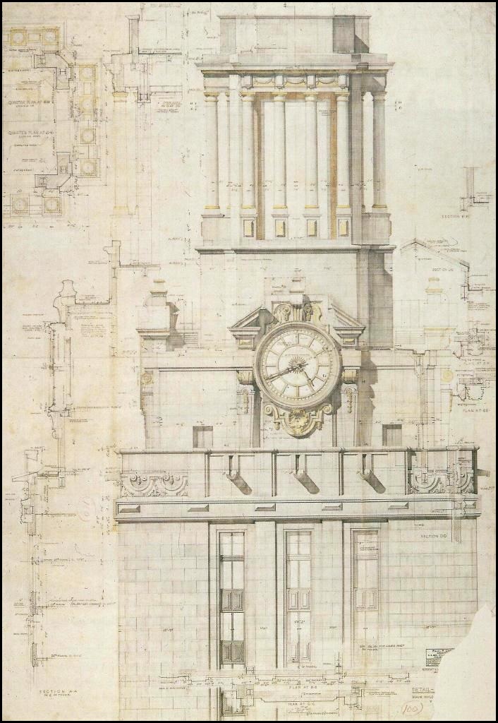 In June 1934, the Board of Regents met in the President’s Office – then in Sutton Hall – to review the final plans for phase two of the Main Building, which included the south façade and Tower. Paul Cret traveled from Philadelphia to personally present the sketches and drawings, and to answer the regents’ many questions. After a lengthy discussion, the designs were enthusiastically approved. Contracts were awarded in November, and construction began the following January.